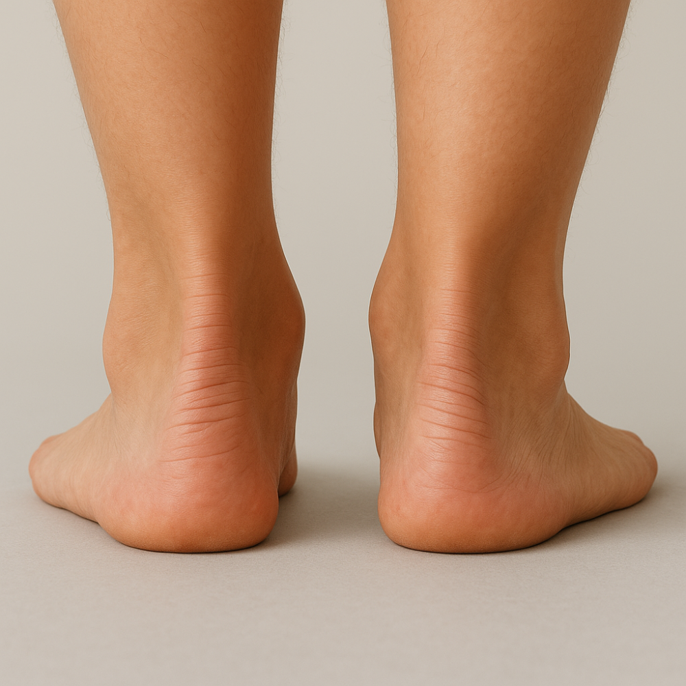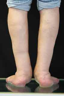 - eine nach außen gekippte Ferse, eine sogenannte Valgusstellung,
