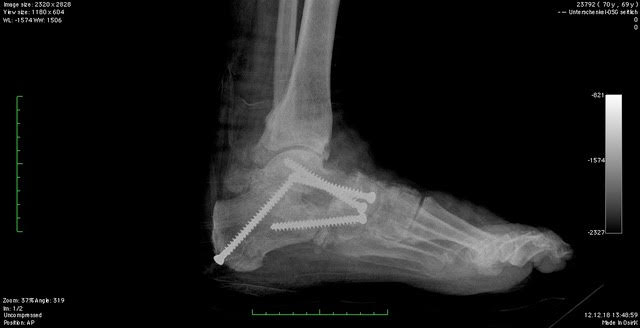 - Versteifung dreier Rückfußgelenke (Talonavikular-, Kalkaneokuboid- und Subtalargelenk)