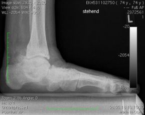 - im Spätstadium auch Schmerzen am Aussenknöchel.